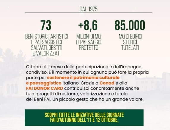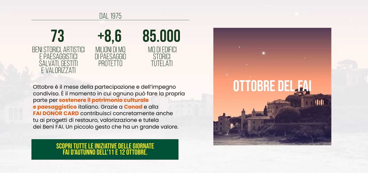 Per questo abbiamo scelto di sostenere il FAI – Fondo per l’Ambiente Italiano – in occasione della campagna di raccolta fondi “Ottobre del FAI”.